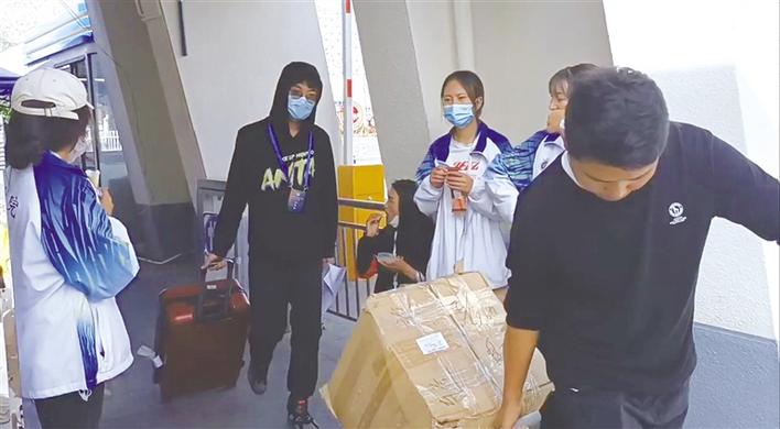 據(jù)迎新工作人員介紹,新生入校后,黨員志愿服務(wù)隊會對新生進(jìn)行身份核驗、測體溫,學(xué)生志愿服務(wù)隊會幫新生將行李搬運至新生報到處,新生在報到處辦理好入學(xué)手續(xù)后,志愿服務(wù)隊的工作人員還會負(fù)責(zé)將學(xué)生行李搬運至新生宿舍。