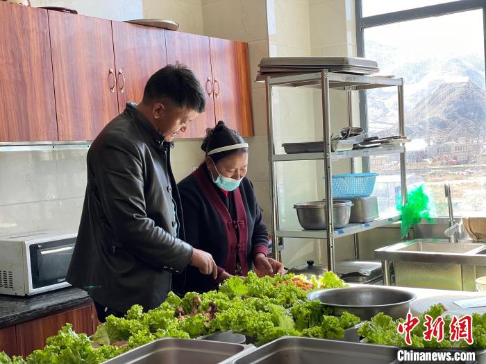 圖為達旦(左)正在查看“愛心午餐”的備餐情況。 謝牧 攝