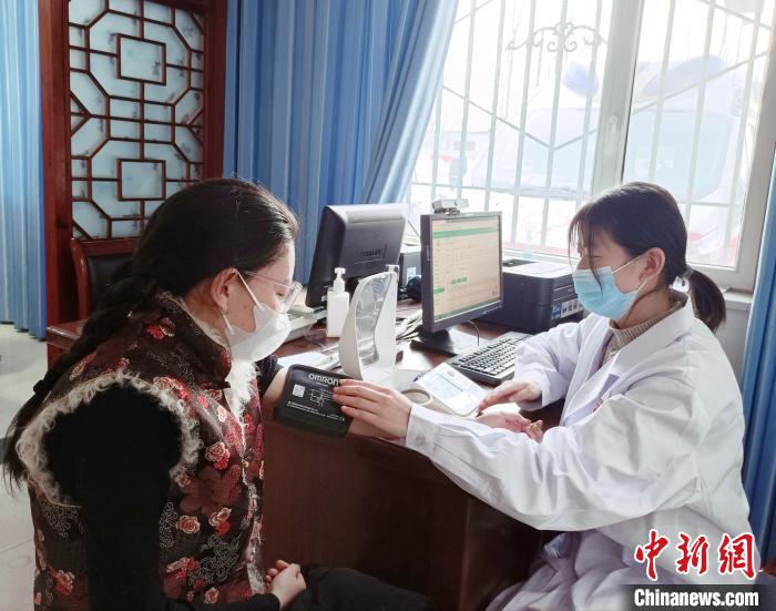 圖為醫(yī)務(wù)人員為牧民進行檢查。青海大學(xué)醫(yī)學(xué)部營養(yǎng)健康促進中心 供圖