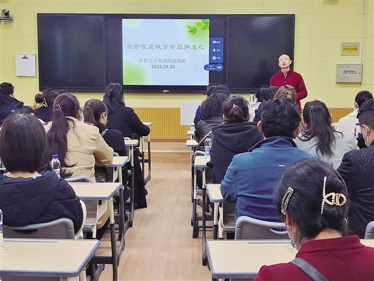 據(jù)拉薩市教育局青少年實踐基地主任扎西平措介紹,家庭教育在孩子成長過程中發(fā)揮著重要作用,為促進學生全面發(fā)展,營造良好的教育生態(tài),拉薩市教育局今年將在全市開展家庭教育系列活動,并將出臺關(guān)于家庭教育工作的實施意見?!案裆;ā奔彝ソ逃嬷v堂在納金小學開設,是此次系列活動的開始,主要是為了達到家校共同育人的目的,為學生健康快樂成長保駕護航。