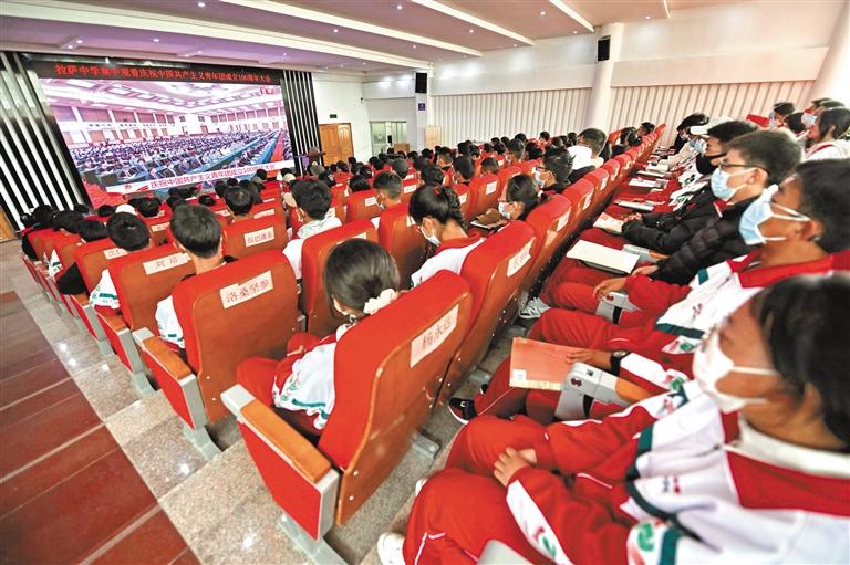 圖為拉薩中學(xué)的師生觀看慶祝中國共產(chǎn)主義青年團成立100周年大會直播。 記者 唐斌 攝
