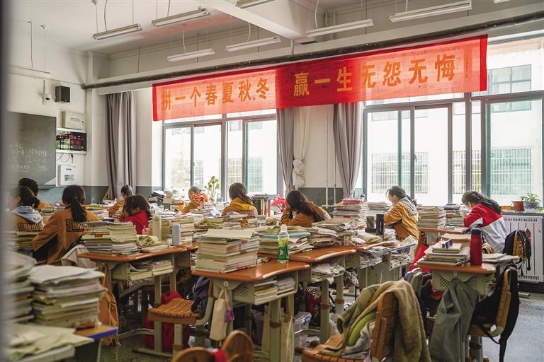走進(jìn)高三年級(jí)教學(xué)樓,走廊里不時(shí)傳來(lái)朗朗讀書聲,每一個(gè)角落都充斥著同學(xué)們?yōu)榍啻汉蛪?mèng)想奮力拼搏的氣息。在高三(9)班的教室里,學(xué)生們正在全神貫注地聽(tīng)課,時(shí)而看課本、時(shí)而做筆記,神情認(rèn)真且專注。桌面上堆積的高高的書籍、練習(xí)冊(cè)和教室墻上掛著的高考倒計(jì)時(shí)牌都在時(shí)刻提醒著同學(xué)們,高考離他們?cè)絹?lái)越近了?!艾F(xiàn)在是高考復(fù)習(xí)的關(guān)鍵時(shí)期,同學(xué)們學(xué)得很認(rèn)真,班里的學(xué)習(xí)氛圍特別好,大家互相幫助、共同進(jìn)步。希望我們通過(guò)自己的努力,考上理想的大學(xué),實(shí)現(xiàn)自己的夢(mèng)想?!睂W(xué)生斯朗卓瑪告訴記者。