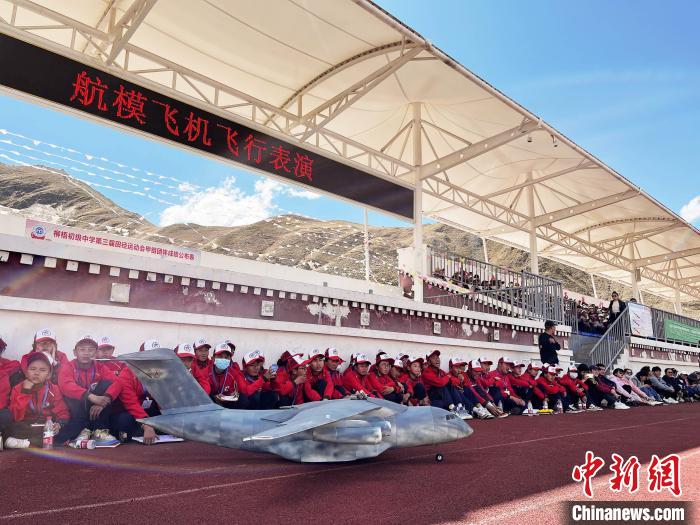 圖為學(xué)生們參與航模飛機飛行表演?!∑照?攝