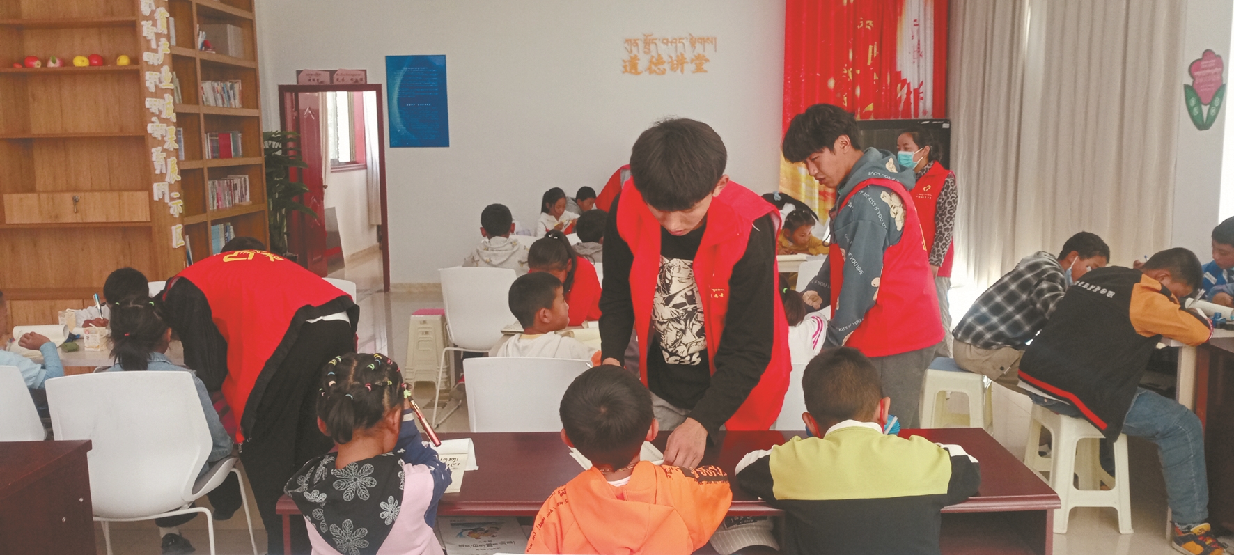圖為7月25日,桑達村大學生為孩子們提供作業(yè)輔導、日間托管服務(wù)。 拉薩融媒記者 齊永昌攝