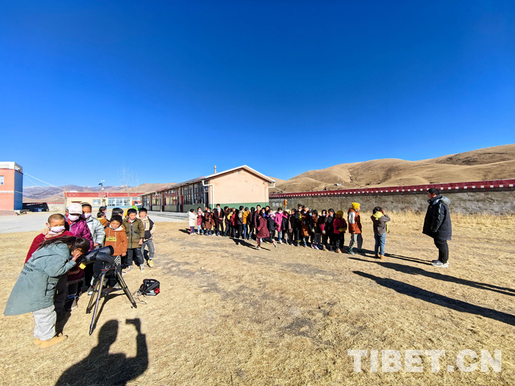 11月30日,王建煜受邀來到海拔4300多米的騾子溝小學(xué),帶著天文設(shè)備為牧區(qū)孩子們上了一節(jié)望遠(yuǎn)鏡觀測入門課。王建煜通過PPT展示了豐富的天文社團(tuán)活動(dòng),引起了孩子們強(qiáng)烈的好奇心和探索心。他介紹到,要想觀測到遙遠(yuǎn)的地方,必須要借助工具,而天文望遠(yuǎn)鏡,就是我們觀測星空的工具。