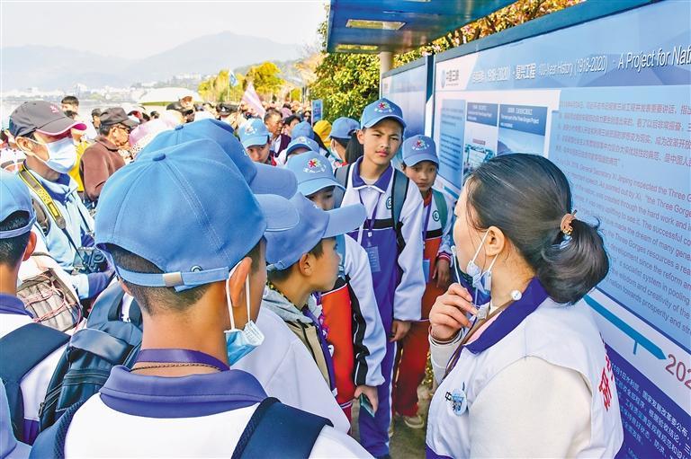 圖為加查縣中學(xué)學(xué)生走進三峽大壩壇子嶺園區(qū),在研學(xué)導(dǎo)師的帶領(lǐng)下感受“大國重器”。記者 劉楓 攝