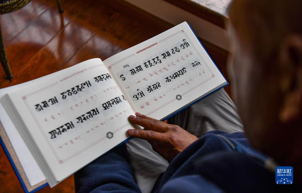 久米次成查閱梵文藏文對(duì)照工具書(shū)(4月19日攝)。新華社記者 晉美多吉 攝