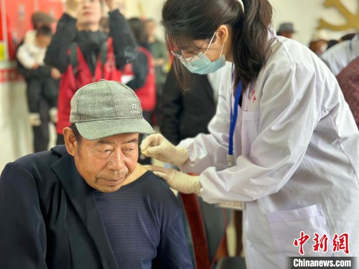 圖為長沙醫(yī)學(xué)院“長小團”赴紅崖溝村義診服務(wù)現(xiàn)場?!⒀蟆z
