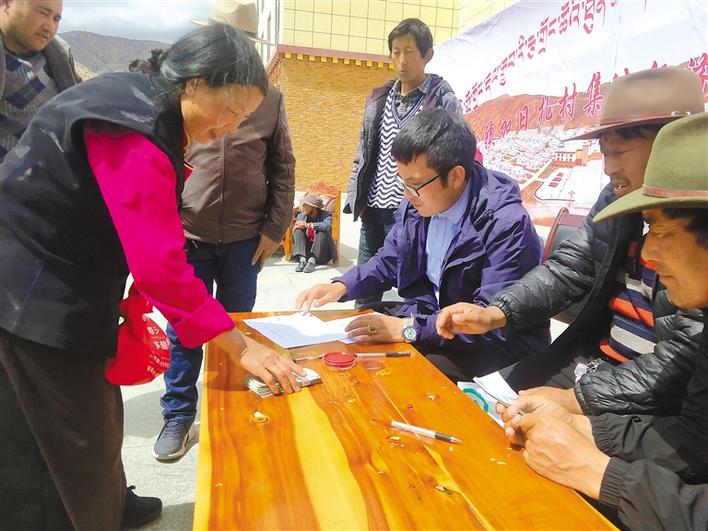 圖為洛隆縣孜托鎮(zhèn)加日扎村集體產(chǎn)業(yè)效益分紅現(xiàn)場(chǎng)。記者 陳志強(qiáng) 攝