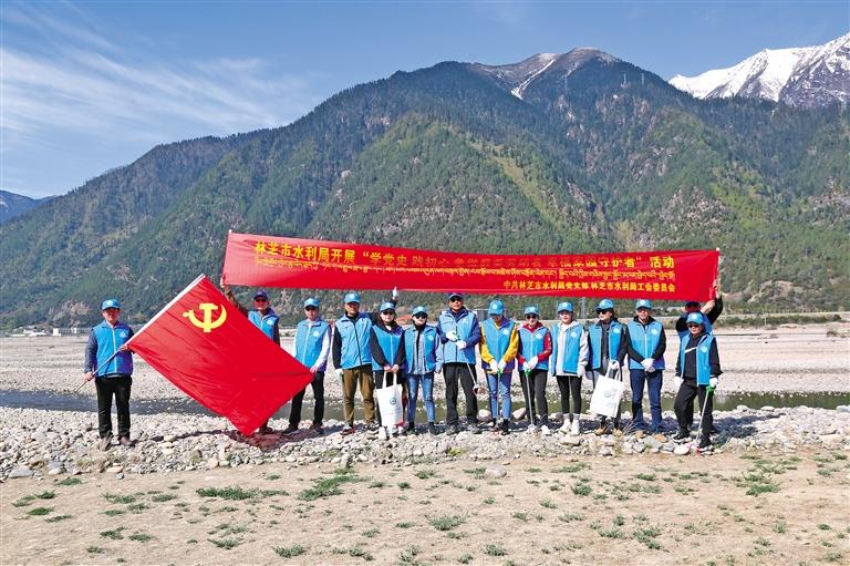 圖為活動結束后林芝市水利局干部職工合影。 記者 胡文 攝