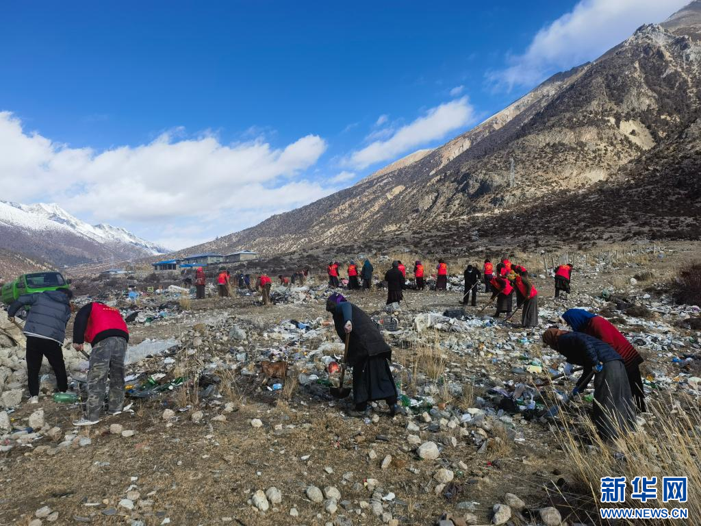 在西藏昌都市八宿縣然烏鎮(zhèn)然那村,群眾們正在參與環(huán)境衛(wèi)生整治活動(12月6日攝)。新華社發(fā)(土登念扎 攝)