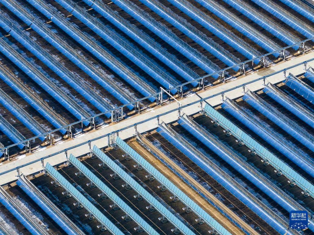 這是申扎縣城集中供暖項(xiàng)目太陽(yáng)能集熱場(chǎng)局部(1月6日攝)。新華社記者 曹檳 攝