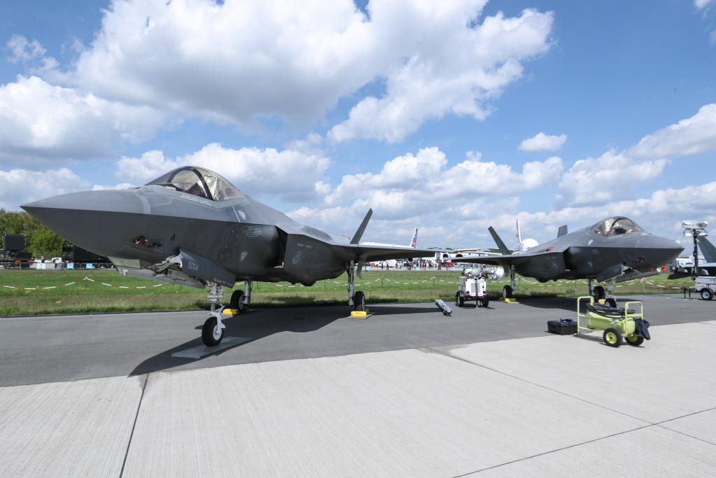這是2018年4月27日在德國柏林國際航空航天展上拍攝的“F-35”型戰(zhàn)機(jī)。新華社記者單宇琦攝
