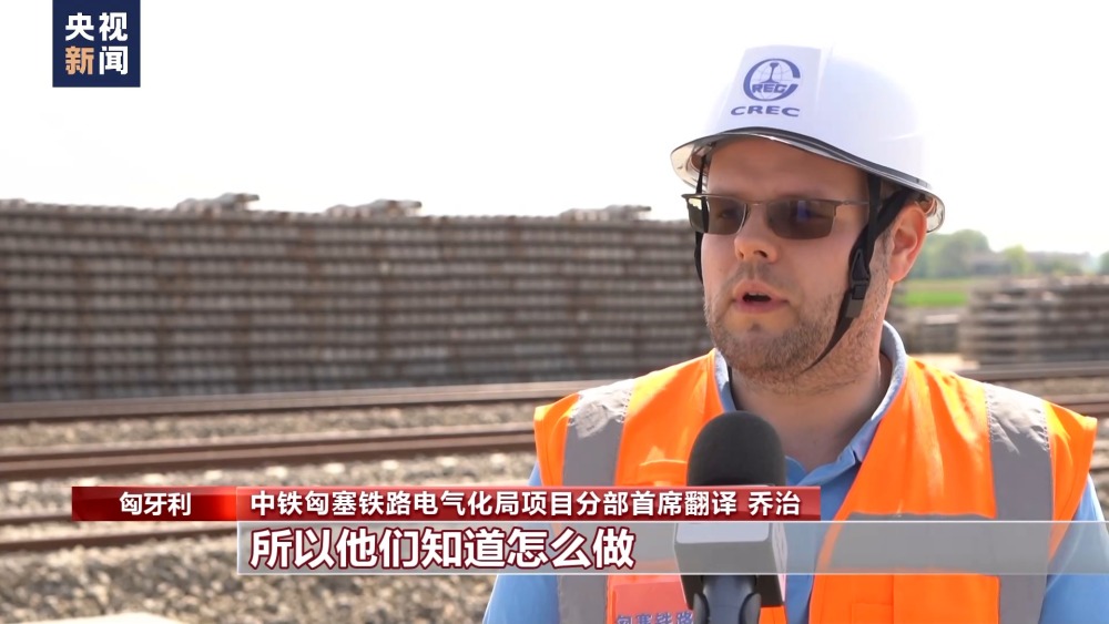 總臺記者 顧鑫:在位于匈牙利首都布達(dá)佩斯以南20多公里的匈塞鐵路匈牙利段中國中鐵建設(shè)段上,我們可以看到緊張有序的施工正在火熱進(jìn)行。到今年年底,接觸網(wǎng)、通信信號、電力變電,這些體現(xiàn)電氣化鐵路特色的專業(yè)設(shè)備的施工安裝將接近尾聲。