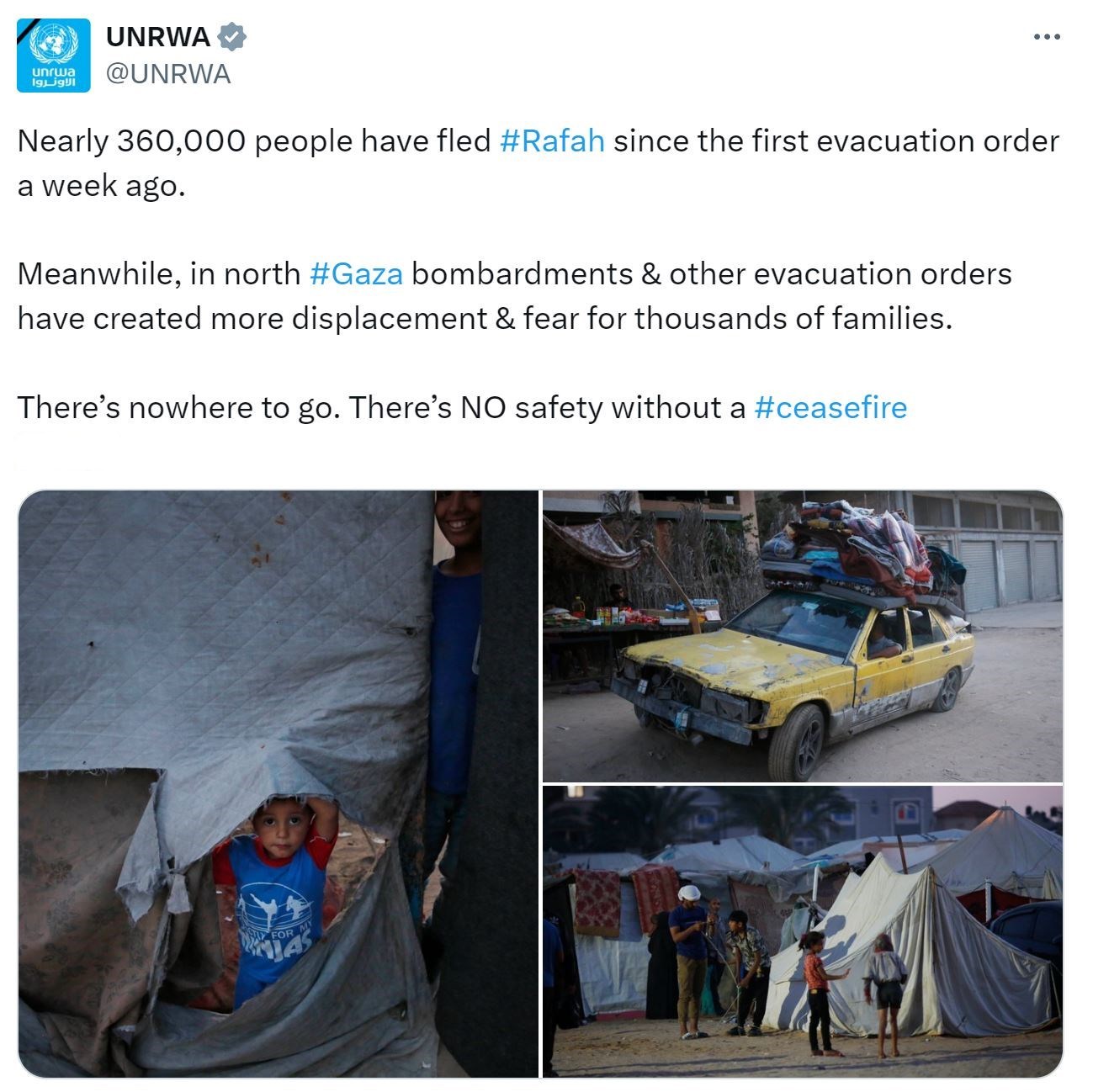 △聯(lián)合國近東救濟工程處13日通過社交媒體發(fā)表聲明稱,迫于以色列政府持續(xù)發(fā)布的強制疏散令,過去一周約有36萬巴勒斯坦平民撤出拉法,其中大多數(shù)人已經在加沙境內經歷多次顛沛流離。