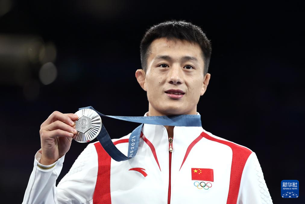 8月5日,亞軍中國選手何冰嬌在頒獎(jiǎng)儀式上。新華社記者 任正來 攝