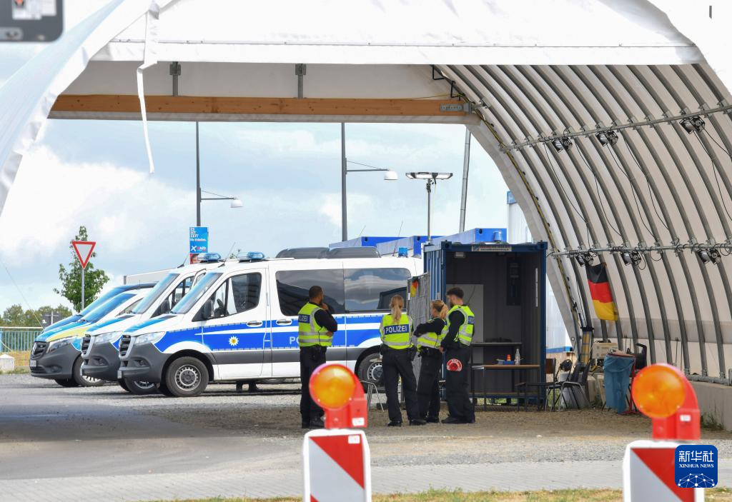 9月10日,在位于德國和波蘭邊境的德國城市奧得河畔法蘭克福,警察在邊檢站執(zhí)勤。新華社記者 任鵬飛 攝