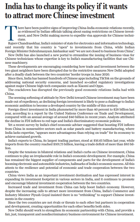 原標(biāo)題:India has to change its policy if it wants to attract more Chinese investment