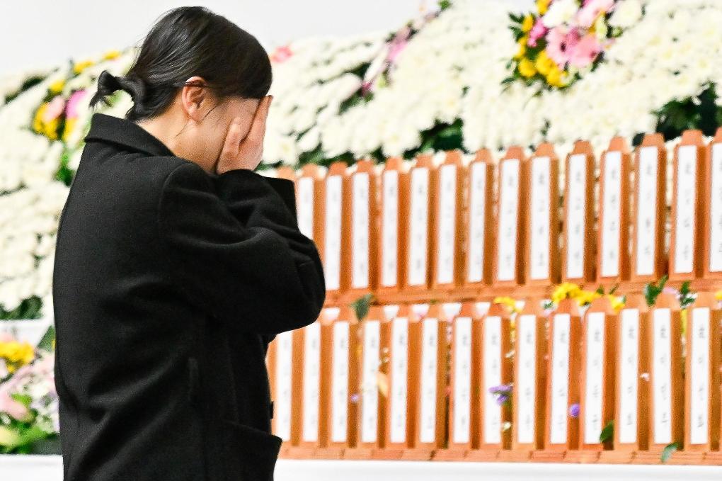 12月30日,遇難者家屬在韓國務安當?shù)卦O置的靈堂內哀悼親人。新華社發(fā)(全休相攝)