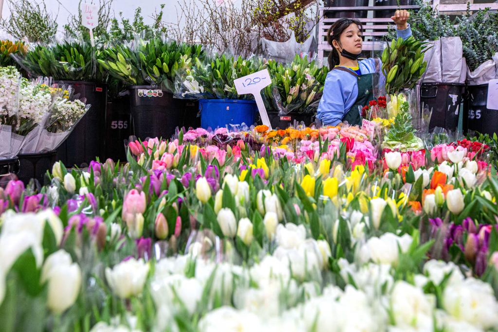2023年2月21日,工作人員在泰國(guó)曼谷帕空鮮花市場(chǎng)包裝來自云南的鮮花。新華社記者王騰攝