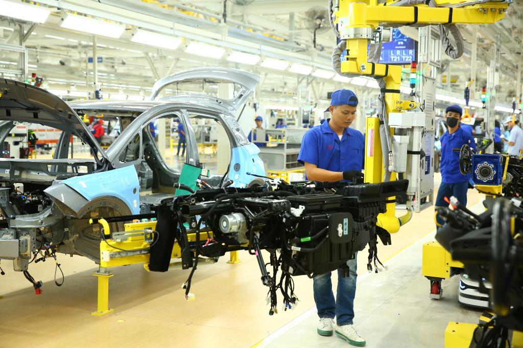 2024年7月4日,工人在位于泰國(guó)羅勇府的比亞迪泰國(guó)工廠工作。新華社記者孫瑋彤?dāng)z
