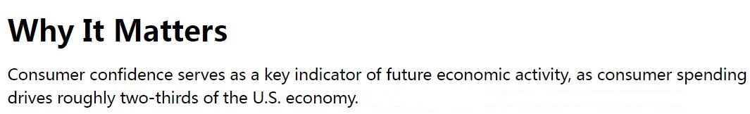 CCI既反映美國(guó)人對(duì)當(dāng)前經(jīng)濟(jì)狀況的評(píng)估,也反映他們對(duì)未來(lái)六個(gè)月的展望,是預(yù)測(cè)美國(guó)未來(lái)經(jīng)濟(jì)前景的關(guān)鍵指標(biāo)。