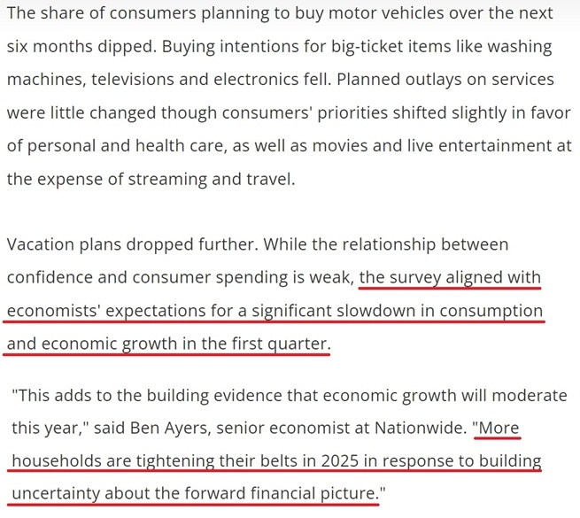 報(bào)告警告,如果美國(guó)消費(fèi)者信心繼續(xù)下滑,可能會(huì)顯著影響他們的消費(fèi)模式,在未來(lái)幾個(gè)月減緩經(jīng)濟(jì)增長(zhǎng)。