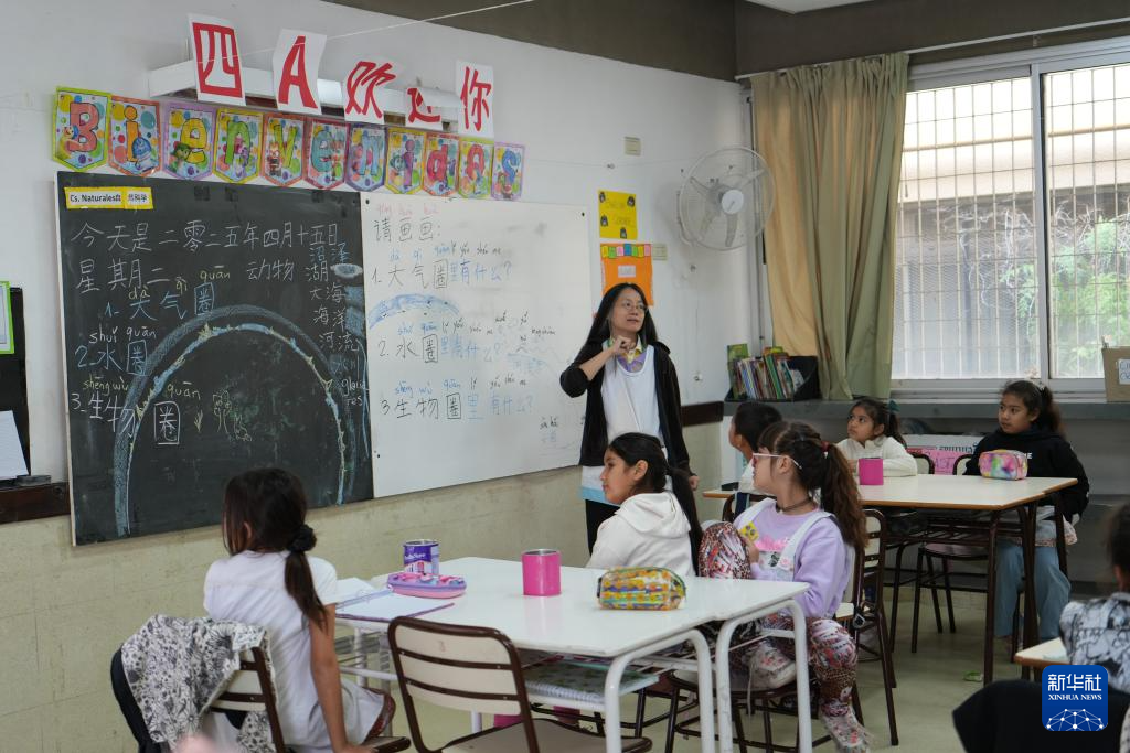 4月15日,阿根廷首都布宜諾斯艾利斯市第五學區(qū)第28號小學的中文教師在上課。新華社記者 張鐸 攝