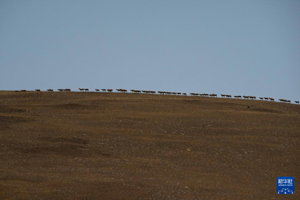 羌塘國家級自然保護(hù)區(qū)核心區(qū)繁殖遷徙路上的雌性藏羚羊群(6月10日攝)。新華社記者 姜帆 攝