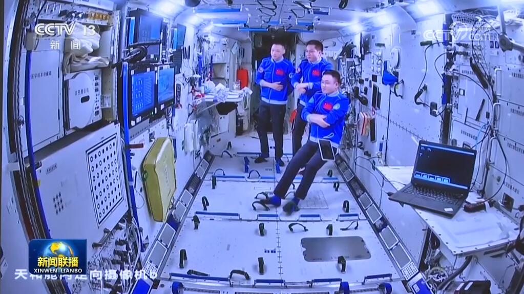 正在空間站執(zhí)行任務的神舟十七號乘組在軌觀看神舟十八號載人飛行任務新聞發(fā)布會和記者見面會。