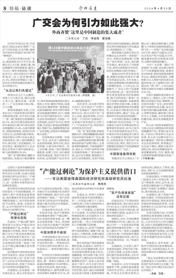 多次參加廣交會的韓國FORMULER公司銷售經(jīng)理金明圭說:“通過這個平臺,我們可以接觸到來自不同國家的供應商和采購商,為公司發(fā)展開拓新客源。這次開展不到三天,我們已經(jīng)簽下四五單合同?!彼浅?春弥袊袌?,中國市場已經(jīng)非常成熟,不僅體量巨大,還能引領(lǐng)許多產(chǎn)業(yè)在國際舞臺的創(chuàng)新發(fā)展。
