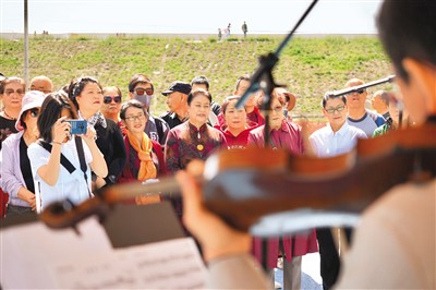 中國(guó)交響樂團(tuán)在五家渠市青格達(dá)湖開展弦樂四重奏“快閃”活動(dòng)。