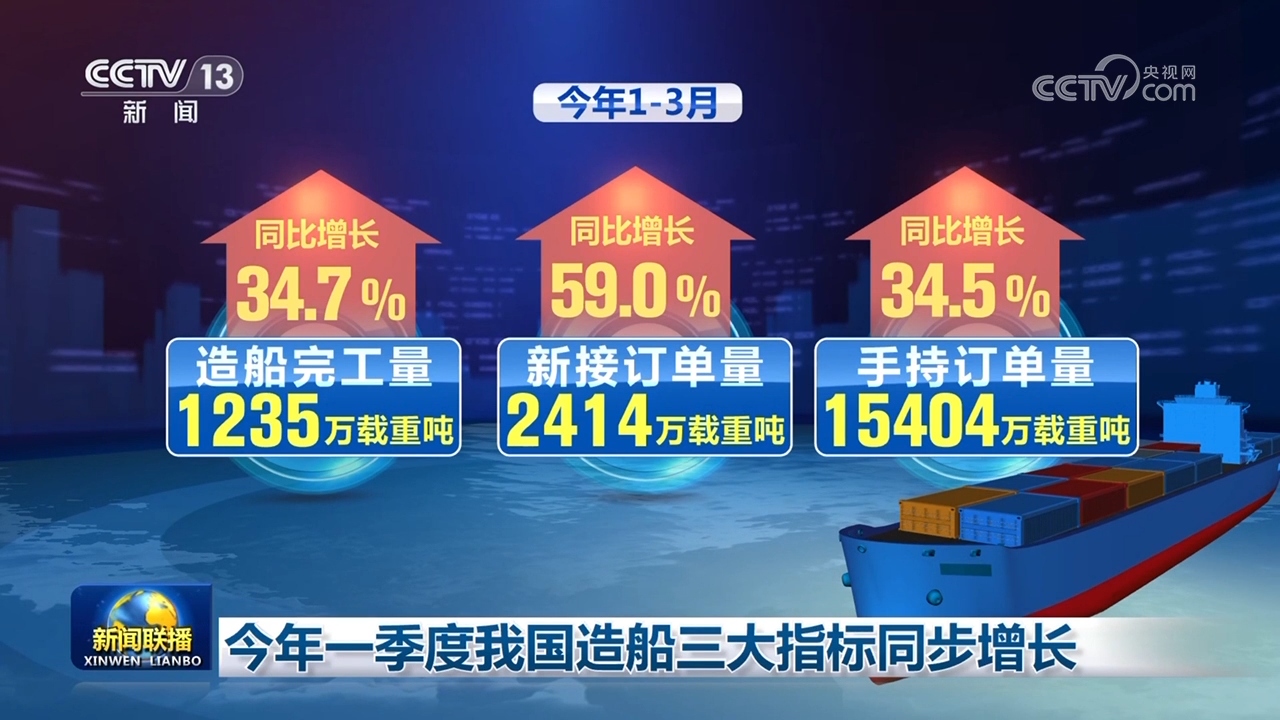 今年一季度我國造船三大指標同步增長