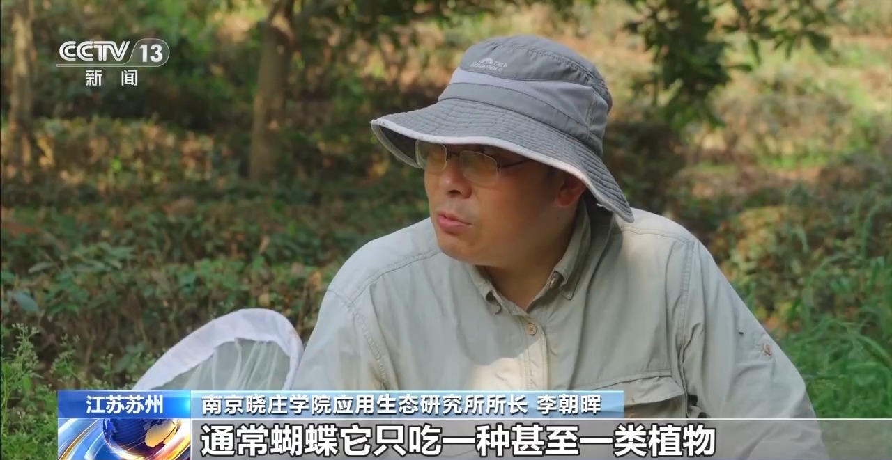 南京曉莊學院應(yīng)用生態(tài)研究所所長 李朝暉:通常蝴蝶只吃一種甚至一類植物,植物的存在與否,我們也能通過蝴蝶的存在與否或者多少直接能夠顯示。