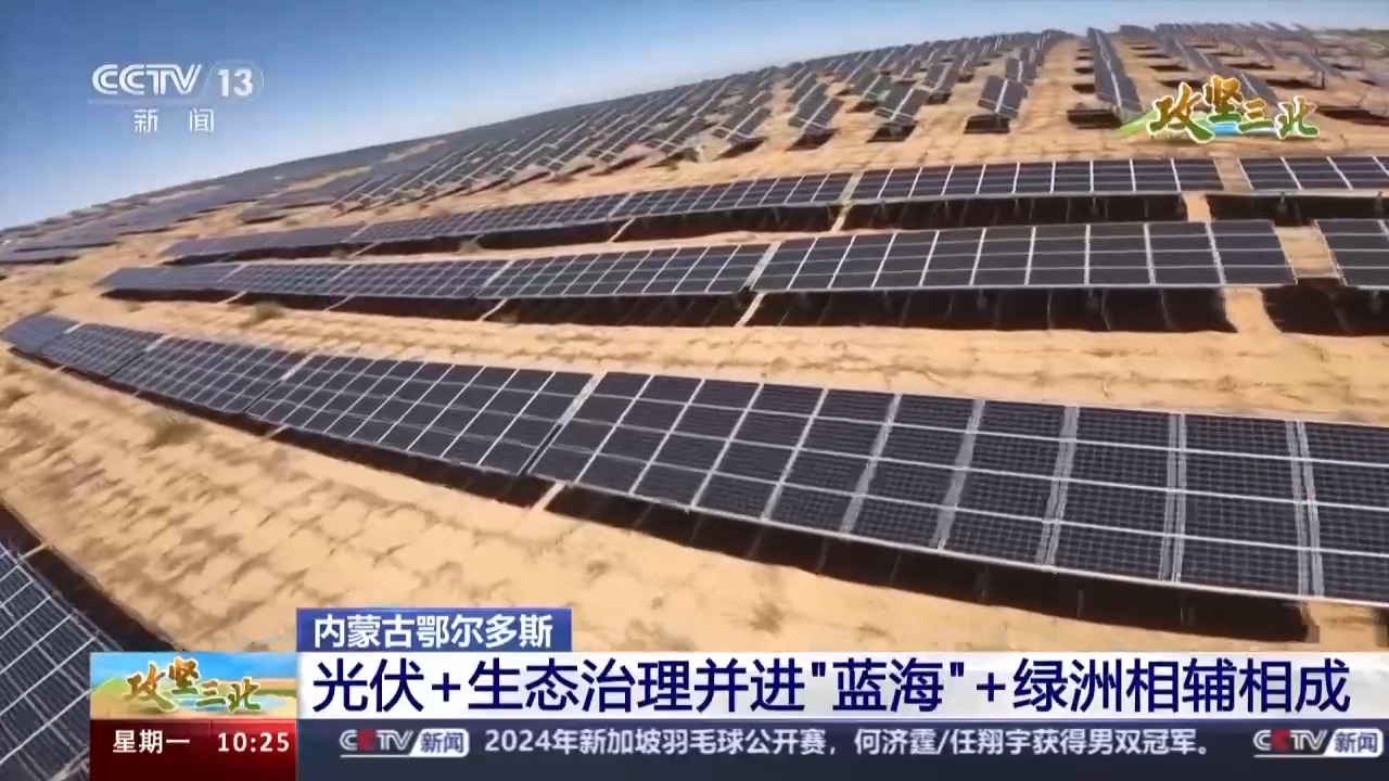 總臺(tái)記者 李欣蔓:此時(shí)此刻,我就在庫布其沙漠的西側(cè)腹地。拿我現(xiàn)在所在的杭錦旗朔方新能源大基地來說,這里正在探索建設(shè)的就是當(dāng)下最新的光伏治沙模式。說到光伏發(fā)電,我們已經(jīng)很熟悉了,那光伏治沙怎么治?今天我們就在現(xiàn)場找一下答案。