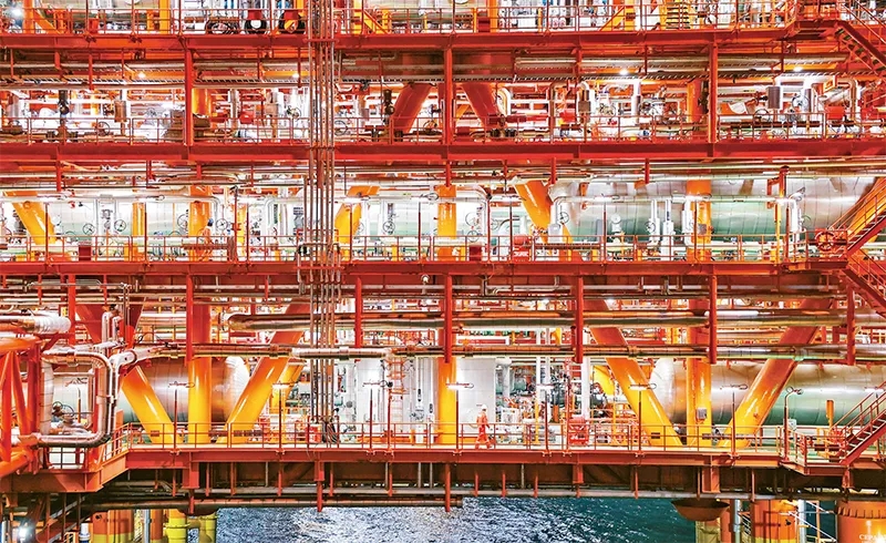 近年來,我國堅持創(chuàng)新引領(lǐng),加快發(fā)展新質(zhì)生產(chǎn)力,重大工程科技含量持續(xù)攀升。2023年11月14日,中國海油宣布我國渤海首個千億方大氣田——渤中19—6氣田Ⅰ期開發(fā)項目成功投產(chǎn),標(biāo)志著我國海上深層復(fù)雜潛山油氣藏開發(fā)邁入新階段。圖為工作人員在渤中19—6氣田作業(yè)。 新華社發(fā) 杜鵬輝/攝