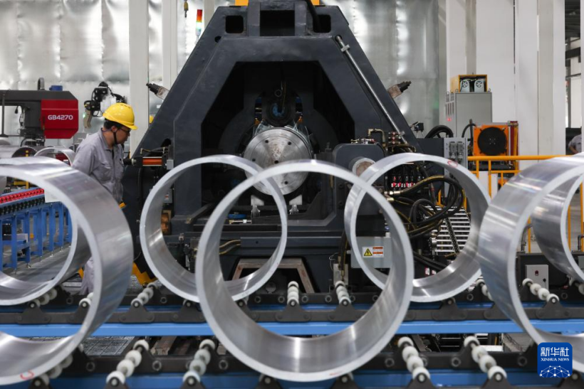 5月31日,一名工作人員在江蘇國(guó)富氫能技術(shù)裝備股份有限公司的儲(chǔ)氫設(shè)備生產(chǎn)車間內(nèi)作業(yè)。新華社記者 楊磊 攝