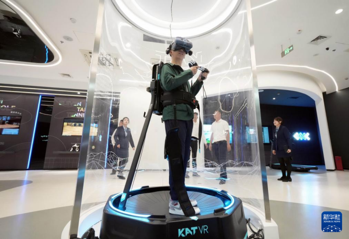 6月1日,昆山元宇宙產(chǎn)業(yè)園的元宇宙展示廳里,一名參觀者在體驗(yàn)VR游戲。新華社記者 李尕 攝