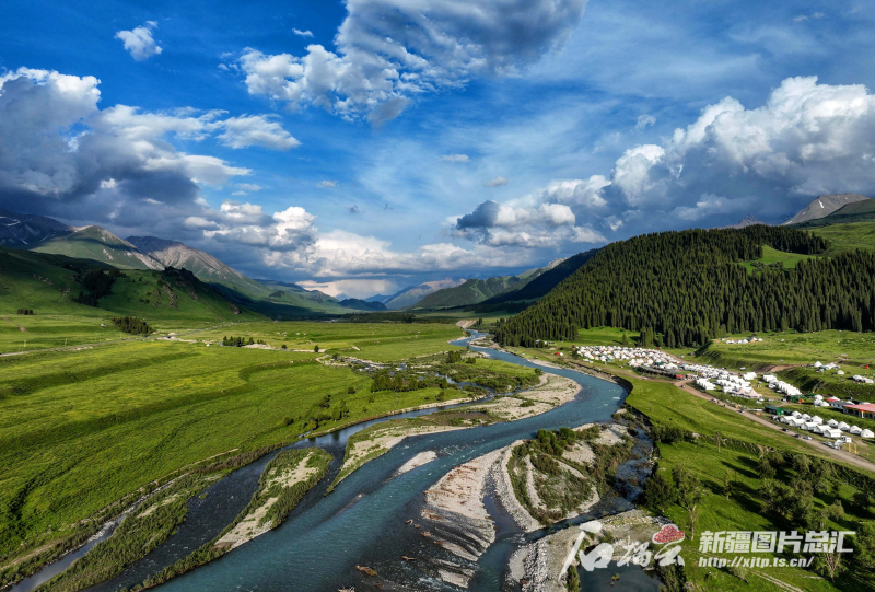 6月17日,藍天白云下的尼勒克縣唐布拉草原。張慶華攝