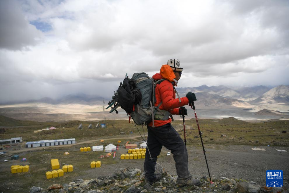 7月5日,完成一次海拔約5670米的慕士塔格峰C1營(yíng)地物品轉(zhuǎn)運(yùn)后,塔西巴伊在下山途中。新華社記者 胡虎虎 攝