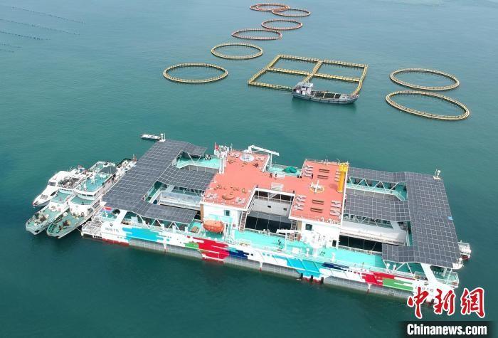 圖為航拍“閩投1號(hào)”深海智慧漁旅平臺(tái)。(無(wú)人機(jī)照片)中新社記者 呂明 攝