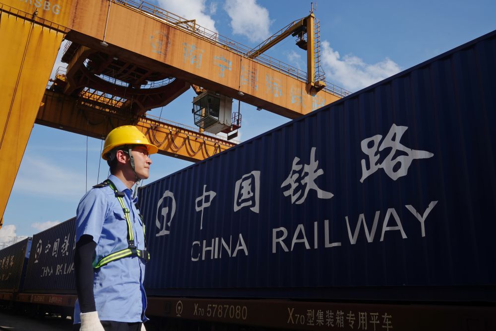 工作人員在南寧國際鐵路港檢查中越班列裝運(yùn)情況。(國鐵南寧局供圖)