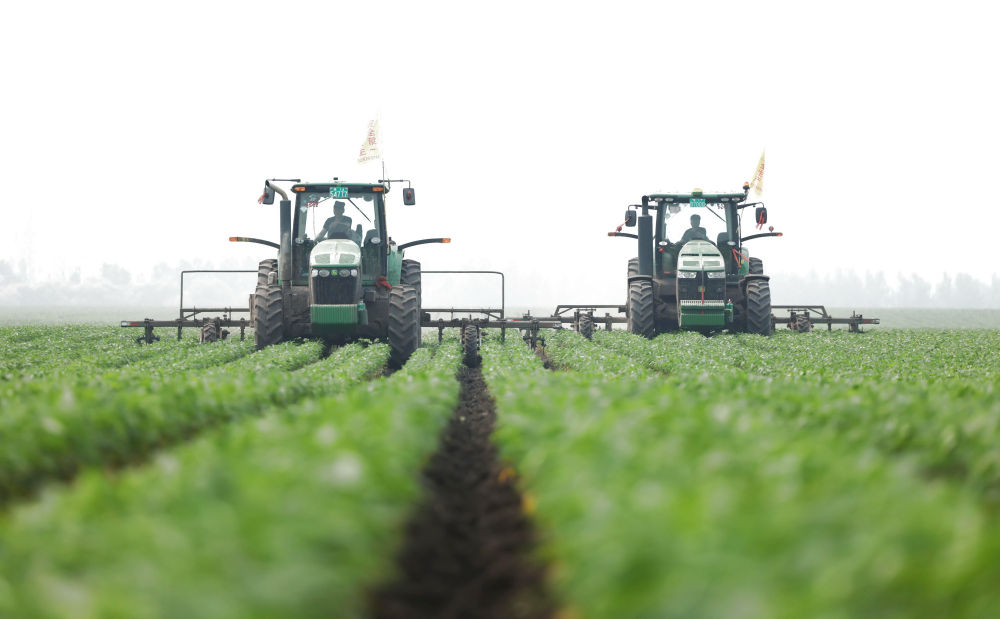 2024年6月25日,大型農(nóng)機(jī)在黑龍江北大荒集團(tuán)鶴山農(nóng)場作業(yè),為土壤增溫放寒(無人機(jī)照片)。今年,黑龍江推進(jìn)高標(biāo)準(zhǔn)農(nóng)田建設(shè)、侵蝕溝治理和農(nóng)田防護(hù)林更新修復(fù)一體化實(shí)施,建設(shè)高標(biāo)準(zhǔn)農(nóng)田1400萬畝、治理侵蝕溝1.2萬條,全面加強(qiáng)黑土地保護(hù)利用。