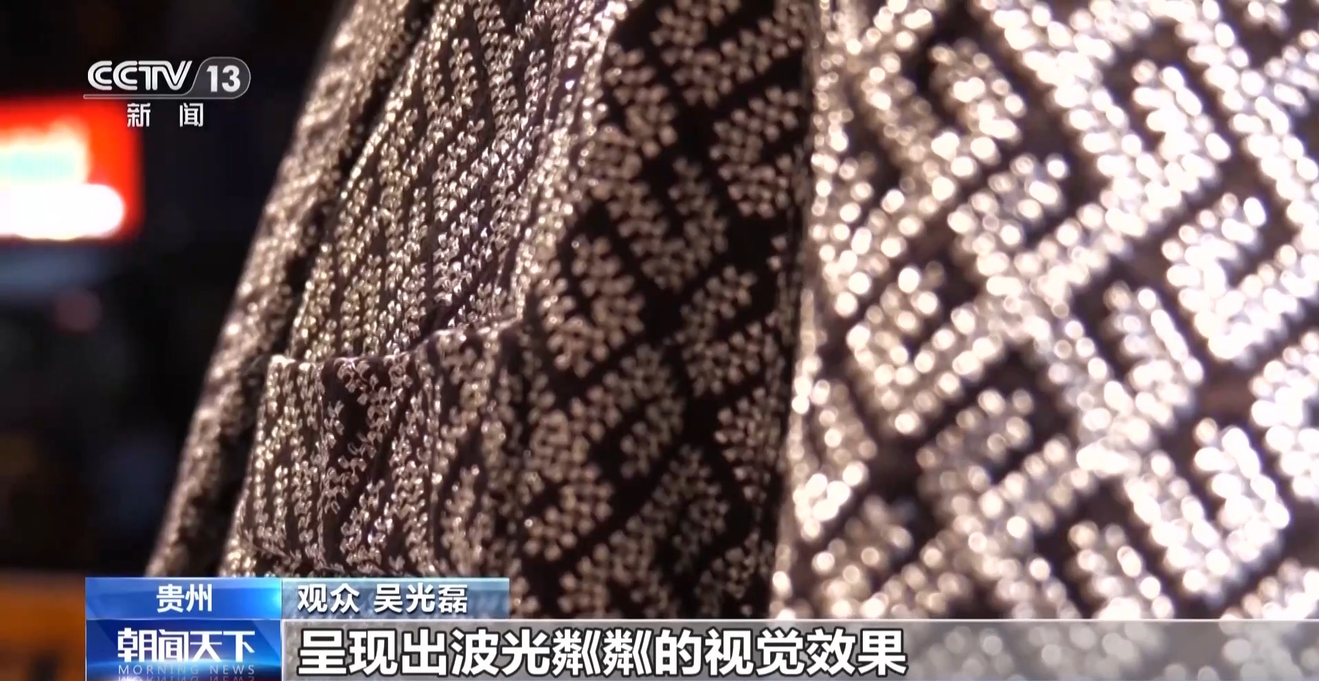 觀眾 吳光磊:錫繡與別的刺繡不一樣。它在場上呈現(xiàn)出波光粼粼的視覺效果。