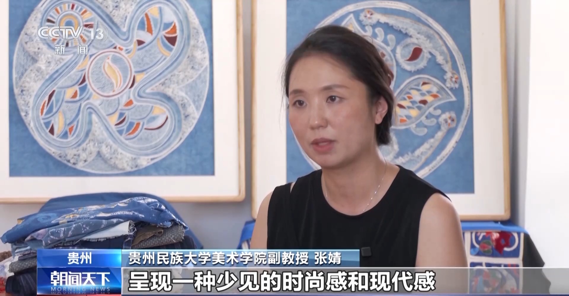貴州民族大學(xué)美術(shù)學(xué)院副教授 張婧:在它的色調(diào)和質(zhì)感的對撞和對比下,使得劍河錫繡呈現(xiàn)一種少見的時尚感和現(xiàn)代感。