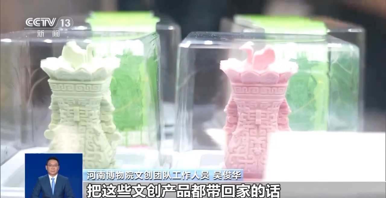 河南博物院文創(chuàng)團(tuán)隊(duì)工作人員 吳俊華:大家來參觀博物館從被動(dòng)灌輸,轉(zhuǎn)化為主動(dòng)探索、去感受考古挖掘的樂趣以及文物的魅力。文創(chuàng)可以發(fā)生這么翻天覆地的變化,文創(chuàng)可以融入大家的衣食住行中。