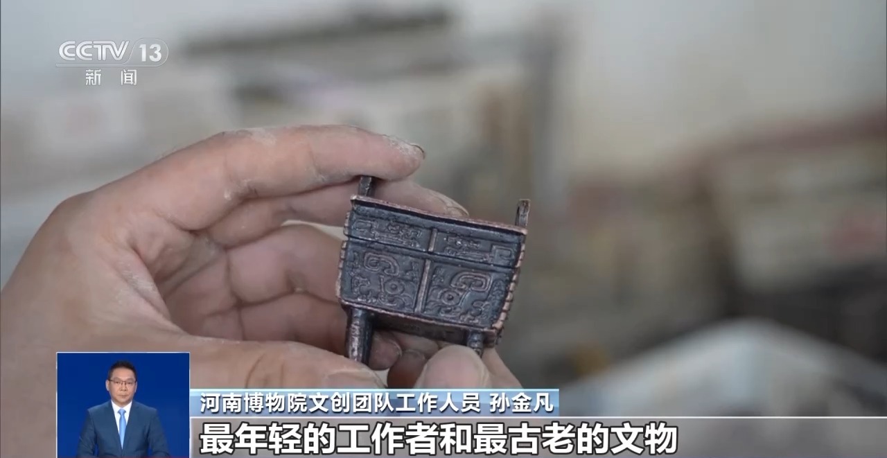 河南博物院文創(chuàng)團(tuán)隊(duì)工作人員 孫金凡:做成的時(shí)候感覺很有成就感,最年輕的工作者和最古老的文物,我覺得我這對CP組得還真的挺不錯(cuò)的。