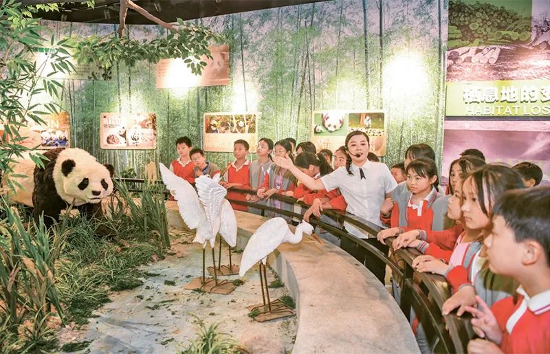 新時(shí)代以來(lái),教育系統(tǒng)著力推動(dòng)思想政治教育、專(zhuān)業(yè)教育與創(chuàng)新教育、社會(huì)實(shí)踐、志愿服務(wù)等的融合。圖為2024年5月17日,學(xué)生們?cè)诮饕素S熊貓科技館開(kāi)展“行走的思政課”主題科普教育活動(dòng),增強(qiáng)節(jié)約資源和保護(hù)自然環(huán)境意識(shí)。 人民圖片 周亮/攝