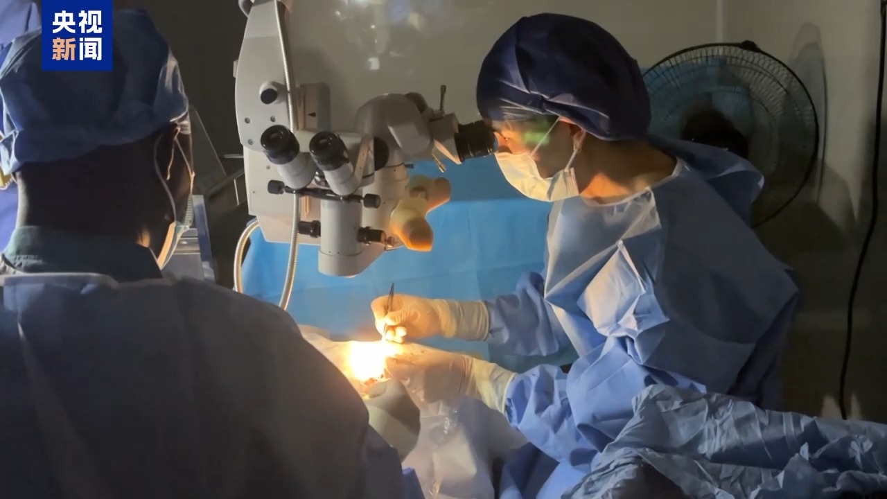 第25批援塞拉利昂中國醫(yī)療隊(duì)隊(duì)員 眼科醫(yī)生 劉丹:她(患者)是20年前受的外傷,然后角膜帶斑翳,就是虹膜粘連,很難的一個(gè)白內(nèi)障(手術(shù))。這里的白內(nèi)障都是好重的,是那種完全看不見的。