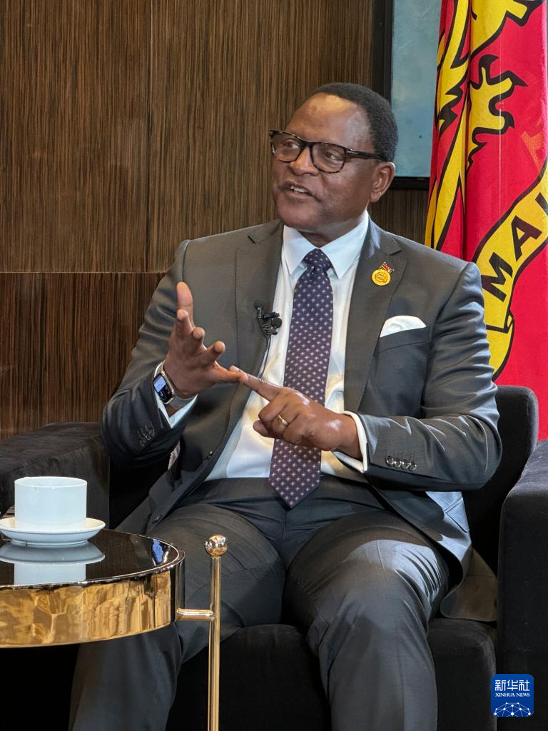 9月3日,來華出席中非合作論壇北京峰會的馬拉維總統(tǒng)拉扎勒斯·查克維拉在北京接受新華社記者采訪。新華社記者 王普 攝